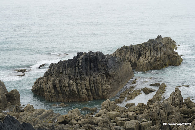 The name Hartland Quay refers to the hotel in the bay. The area is very 'Jurassic' and quite beautiful. Films such as Daphne du Maurier's "Rebecca" and "The Guernsey Literary and Potato Pie Society" were filmed here, as well as "Top Gear" (although I can't quite imagine what they were doing here). Angie and I spent quite a long time here taking photographs until I fell inside the large rock with the hole in the middle!! It was made worse because I was trying to save my camera. I ended up with a grazed head and hand and a bad shoulder. The camera was fine.